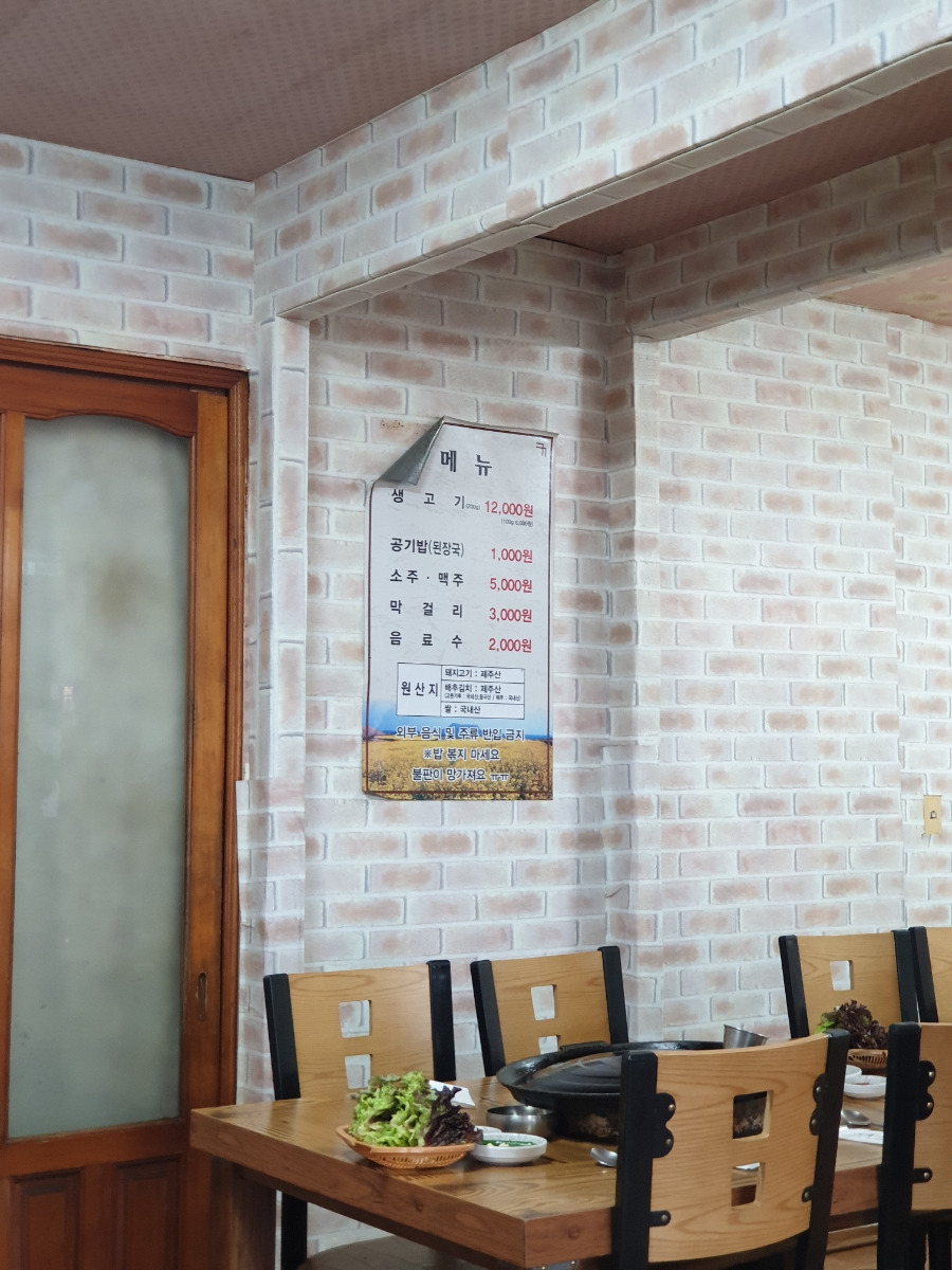 저희는 생고기 2인분, 공기밥 2인분, 음료 1개를 주문했습니다