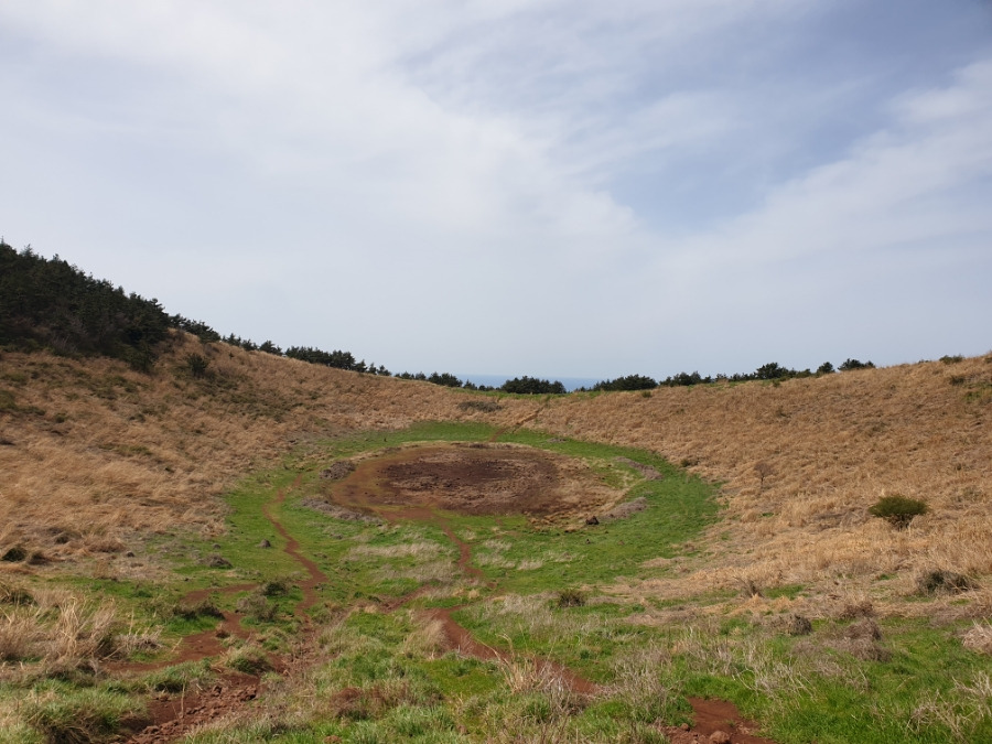 정상의 가운데가 파여있는 구조인데, 비가 오면 물이 고여 있지만 지금은 아쉽게도 물이 다 말랐네요