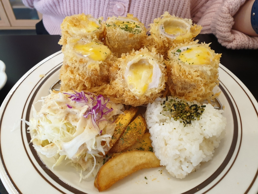 치즈롤까스도 노란 치즈와 하얀 치즈가 같이 들어 있어서 비주얼도 너무 좋았고, 치즈의 고소한 맛이 극대화 되어서 저같은 치즈 덕후들은 너무나 맛있게 먹을 수 있는 메뉴입니다