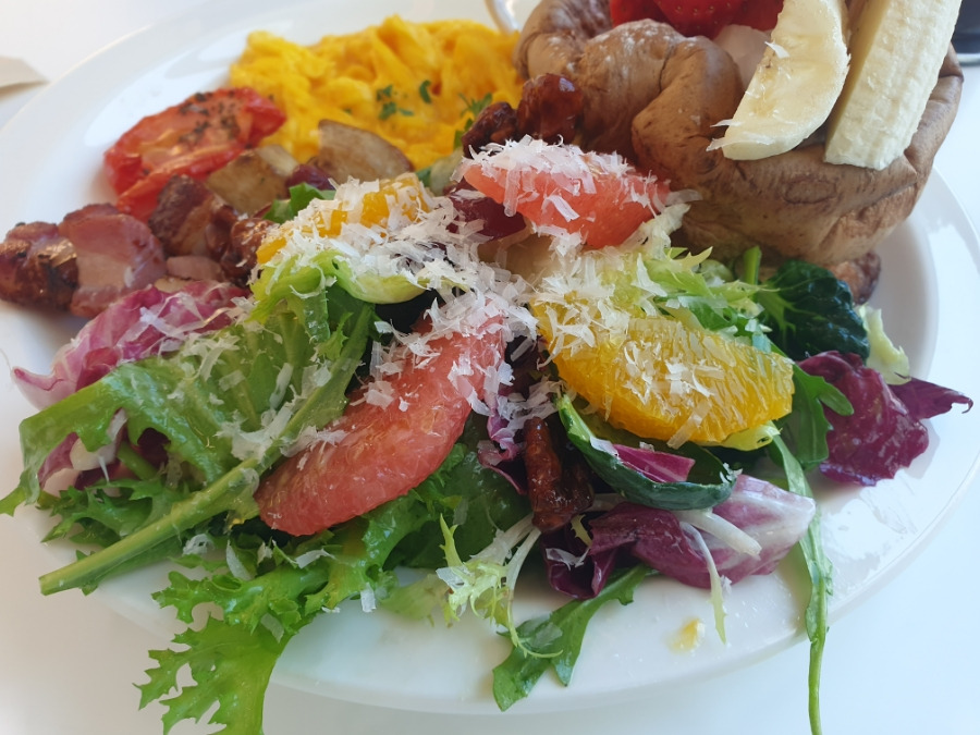 샐러드도 아주 신선하고, 자몽과 오렌지도 들어가 있어서 새콤달콤한 맛을 느낄 수 있었습니다