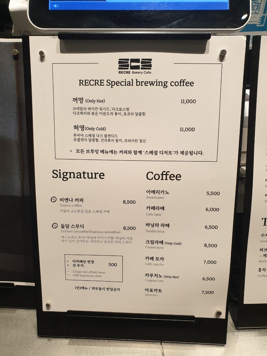 저희는 아이스 아메리카노 한잔과 시그니쳐 메뉴인 돌담 스무디를 주문했습니다