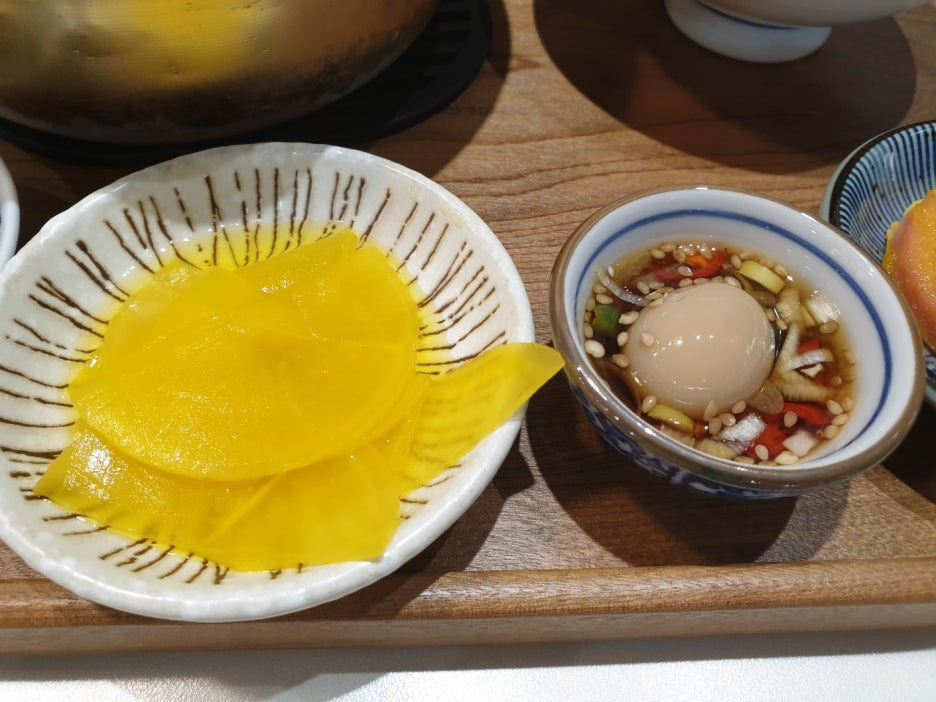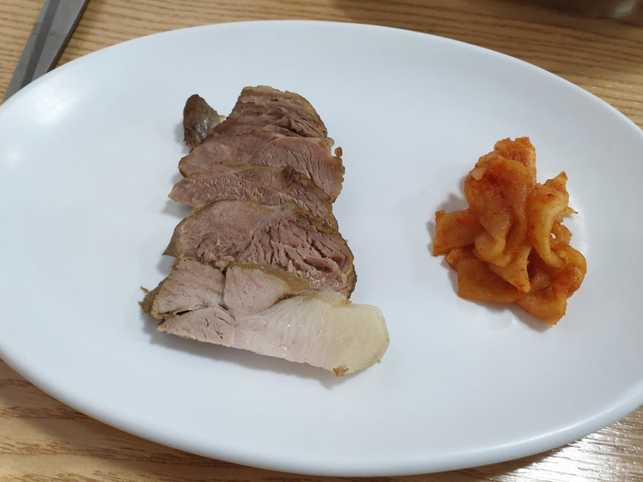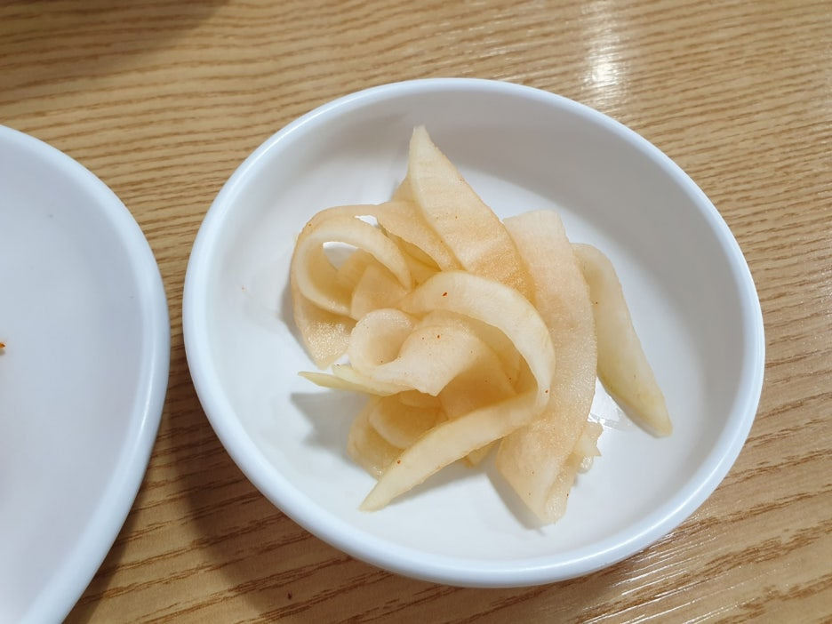 약간의 고기와 무 절임이 반찬으로 나왔습니다