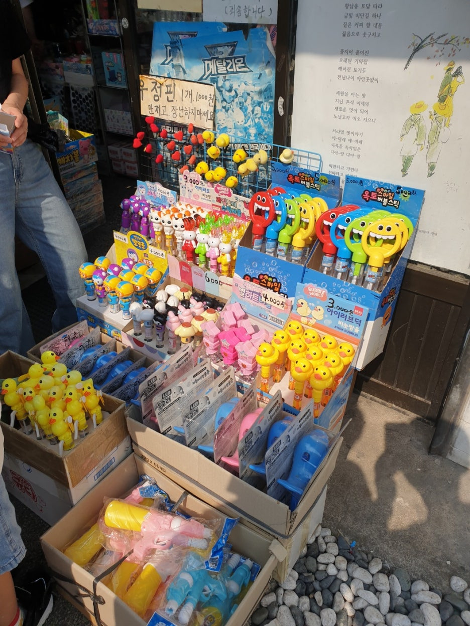 다양한 문구완구가 있고, 특히 옛날에 사먹었던 불량식품들이 많이 있습니다.