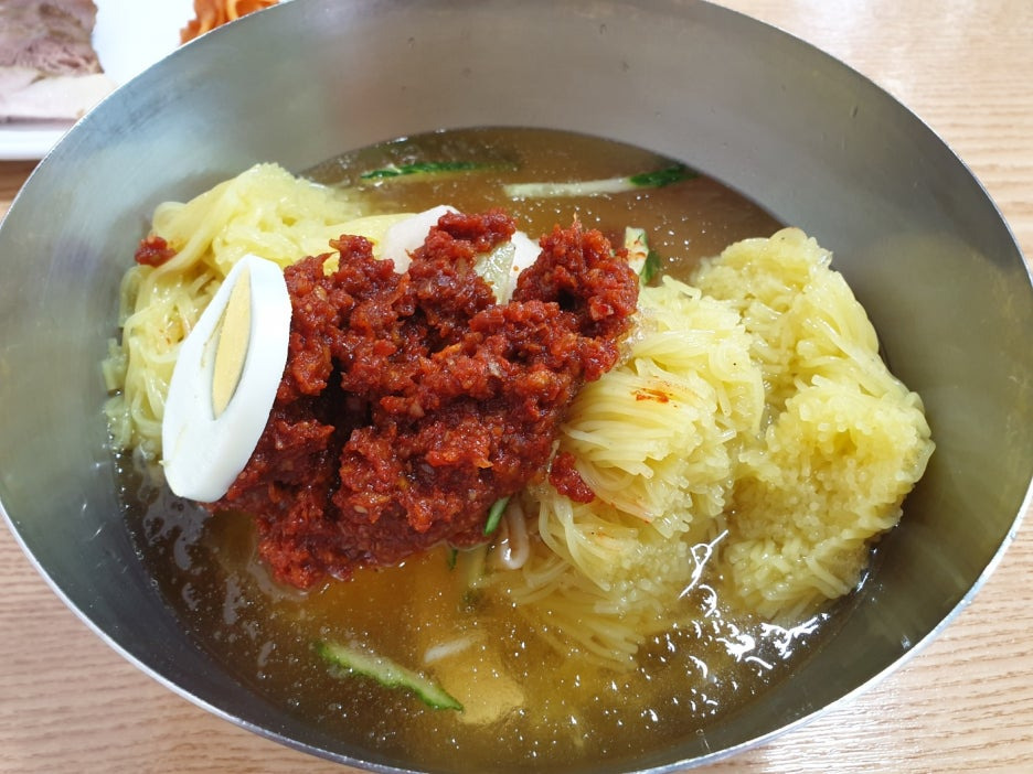 물과 비빔의 중간 정도의 느낌인데, 양념이 전혀 맵지 않고 굉장히 맛있었습니다.
