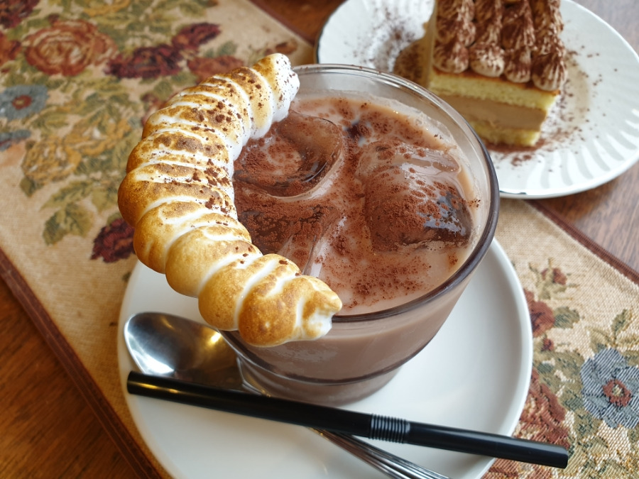 퍼프초코라떼는 구워진 마시멜로우가 한쪽에 올라가 있는 것이 특이했습니다