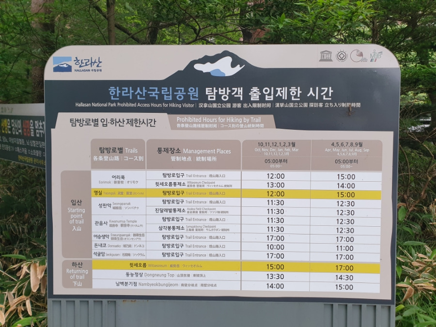 한라산은 계절과 탐방로 별로 출입제한 시간에 차이가 있으니 참고하시면 될 것 같아요