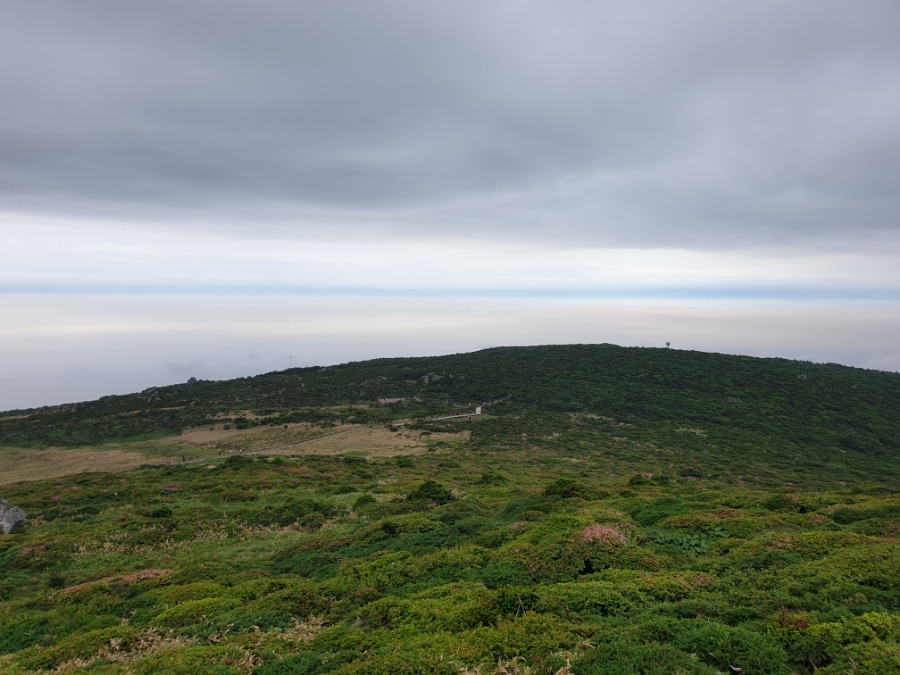 구름 사이로 백록담의 모습이 살짝 보이네요