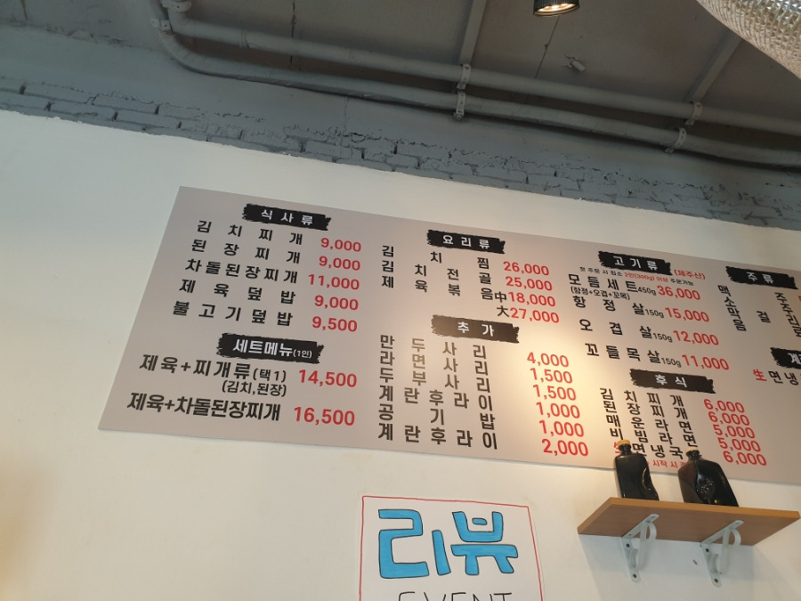 저희는 제육+김치찌개와 제육+차돌된장찌개를 주문했습니다