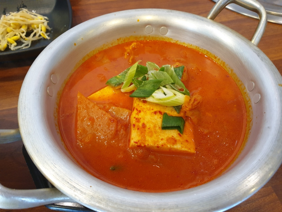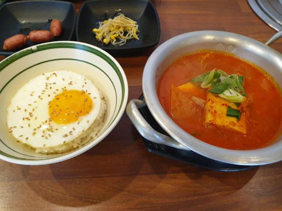 김치찌개는 생각보다 고기가 듬뿍 들어가 있고, 고기의 식감이 부드러운 점이 좋았습니다
