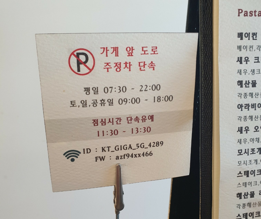 점심시간에는 가게 앞 갓길에 주차가 가능합니다