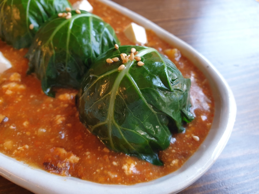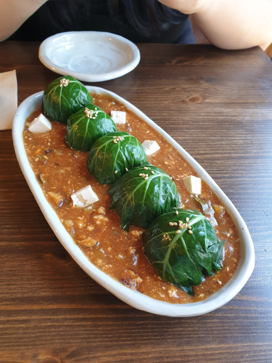 케일과 안에 들어있는 밥, 강된장을 같이 떠먹었을때 너무 조합이 좋았습니다
