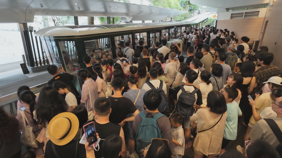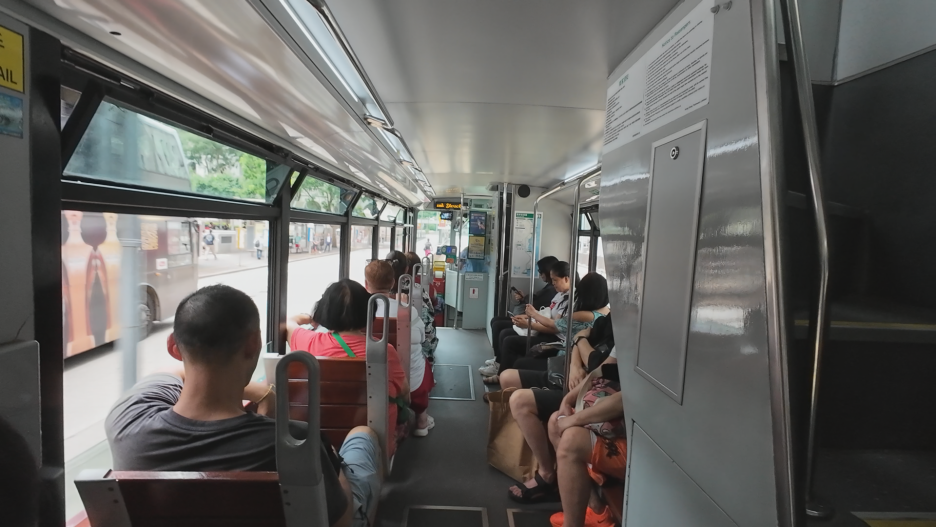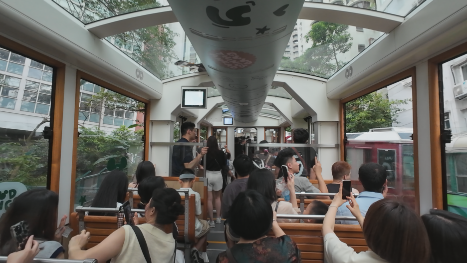 이제 미드레벨 에스컬레이터를 내려와서 피크 트램으로 가기 위해 트램에 탑승했습니다