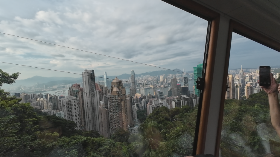 피크 트램에서 내린 뒤에 스카이 테라스 428로 올라가면 홍콩을 한 눈에 조망할 수 있습니다