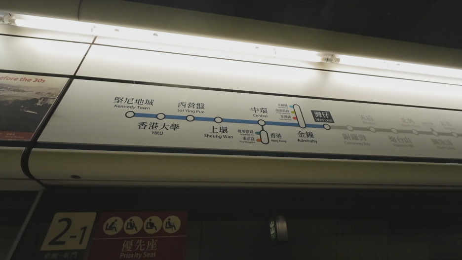 홍콩 여행중에 제일 가보고 싶었던 미드레벨 에스컬레이터에 가기 위해 숙소 근처에 있는 완차이역에서 지하철을 탔습니다