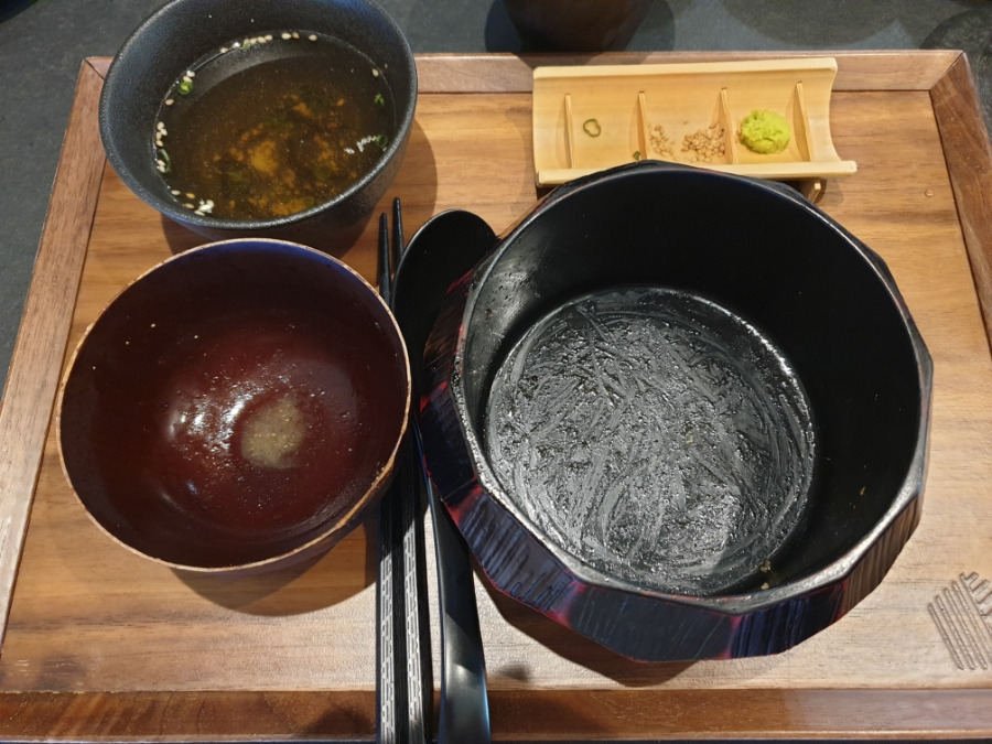그리고 오차즈케를 함께 주시는데, 덮밥을 여기에 말아서 먹으면 됩니다