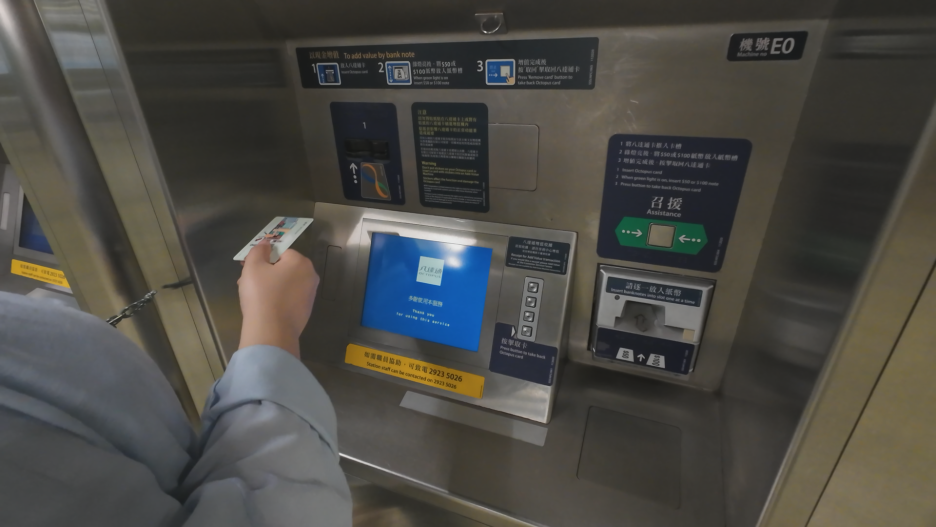 지하철 역마다 옥토퍼스 카드 충전 기계가 있어서 카드를 충전하거나 남은 잔액을 확인할 수 있습니다