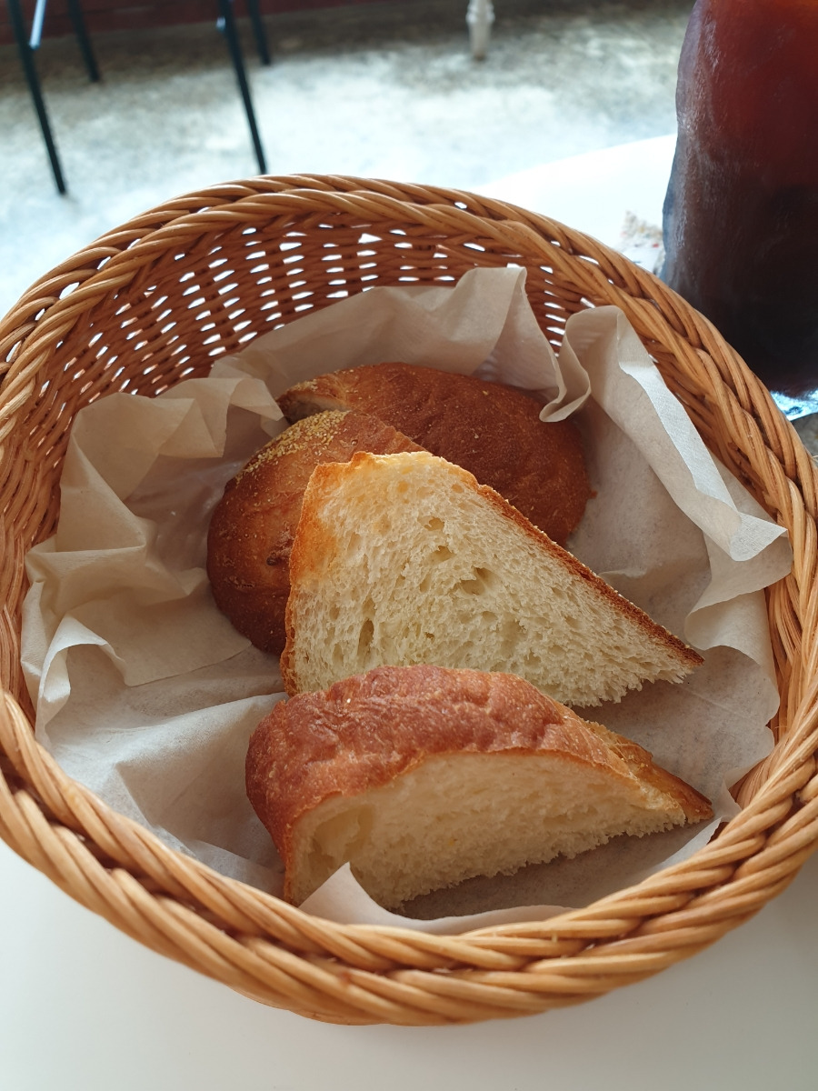 그리고 아보카도 샐러드는 이렇게 빵과 함께 나와서 곁들어 먹기 좋았습니다