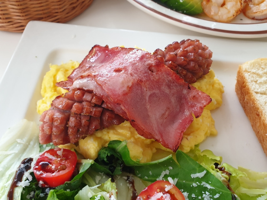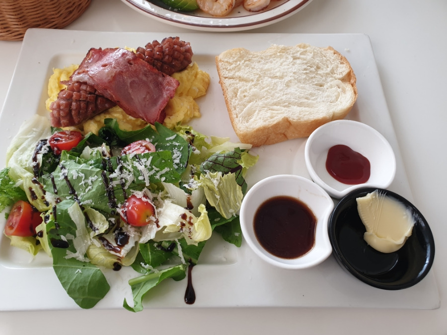 에그스크램블이랑 소세지가 정말 최강의 조합이었습니다