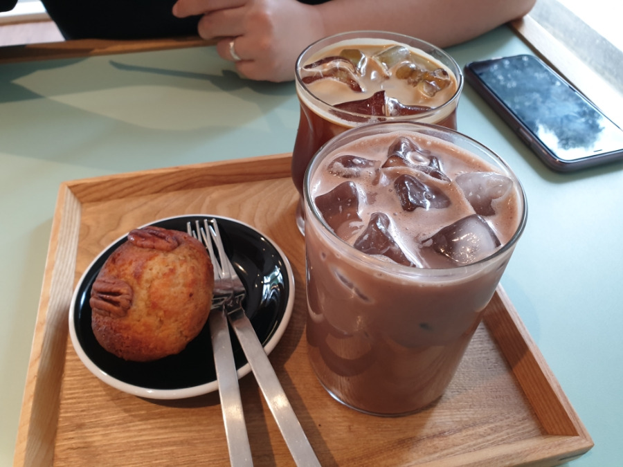 메이플피칸휘낭시에, 아아, 초코라떼를 주문했습니다