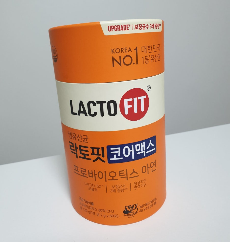이번에 소개할 제품은 '생유산균 락토핏 코어맥스 프로바이오틱스 아연' 입니다 LACTO-5X 포뮬러 보장균수 증량 정상적인 면역기능 건강기능식품 프로바이오틱스 30억 CFU 총 120g(1포 당 2g x 60포) [프로바이오틱스]유산균 증식 및 유해균 억제에 도움을 줄 수 있음배변활동 원활에 도움을 줄 수 있음장건강에 도움을 줄 수 있음 [아연]정상적인 면역 기능에 필요정상적인 세포분열에 필요 [1일 섭취량]열량 10 kcal탄수화물 2g (1%)단백질 0g (0%)지방 0g (0%)나트륨 0mg (0%)프로바이오틱스수 30억 CFU아연 8.5mg (100%) 섭취량 및 섭취방법 : 1일 1회, 1회 1포를 식전, 식후 어느 때나 물 없이 섭..