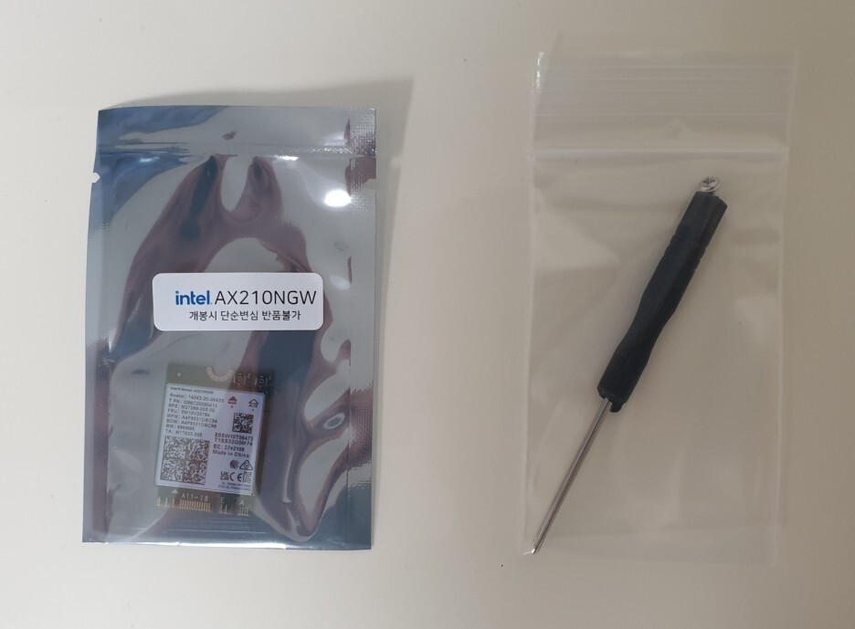 노트북 랜카드 교체 방법(AX210 NGW) 구매한 노트북 랜카드를 언박싱했습니다. 구성품은 간단합니다. 랜카드와, 작은 십자 드라이버, 나사 1개가 들어 있었습니다. 이번에 구매한 랜카드의 모습 입니다. 십자 드라이버와 나사 하나가 들어 있었습니다. 이제 노트북을 까보겠습니다. 노트북 해체를 위해 플라스틱 숟가락이 하나 있으면 좋습니다. 사진에 보이는 틈에 숟가락을 끼워 넣어서 살살 해체해줍니다. 노트북을 해체했습니다. 보시면 가운데 기존 랜카드가 꽂혀 있습니다. 보시면 두개의 케이블이 연결되어 있는데, 선을 잡아당기면 끊어질 수 있으니 손톱을 이용해 살살 해체해줍니다. 선 두개를 해체한 뒤에는 드라이버로 나사를 풀어서 랜카드를 빼줍니다. 랜카드 해체가 완료되었습니다. 이제 새로 구매한 랜카드를 장착해줍니다. 랜카드를 끼운 뒤에 나사로 고정하고,.. IT 2023.04.24