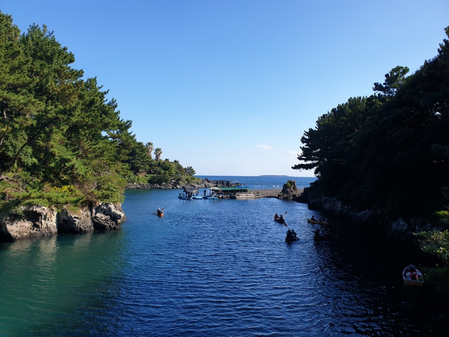 날씨가 좋아서 쇠소깍에서 배를 타는 사람들이 꽤 많았습니다