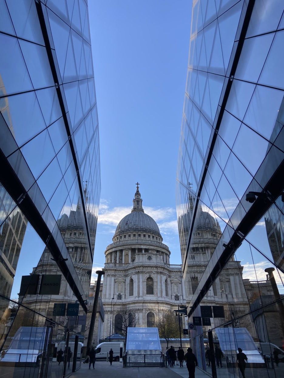건물 사이로 세인트 폴 대성당을 조망할 수 있습니다