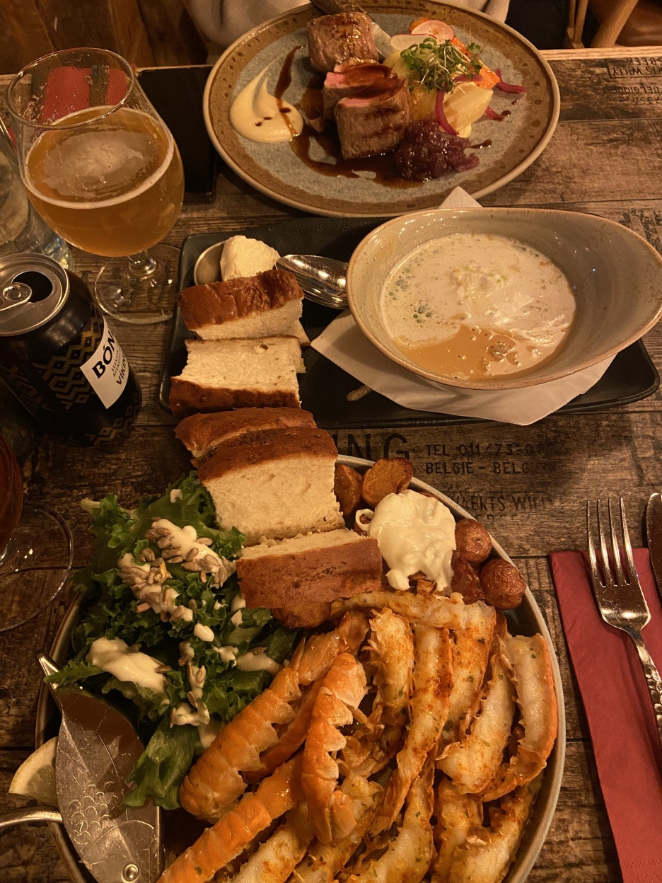 랑구스틴 스프와 양고기 스테이크, 그리고 랑구스틴 구이를 주문했습니다