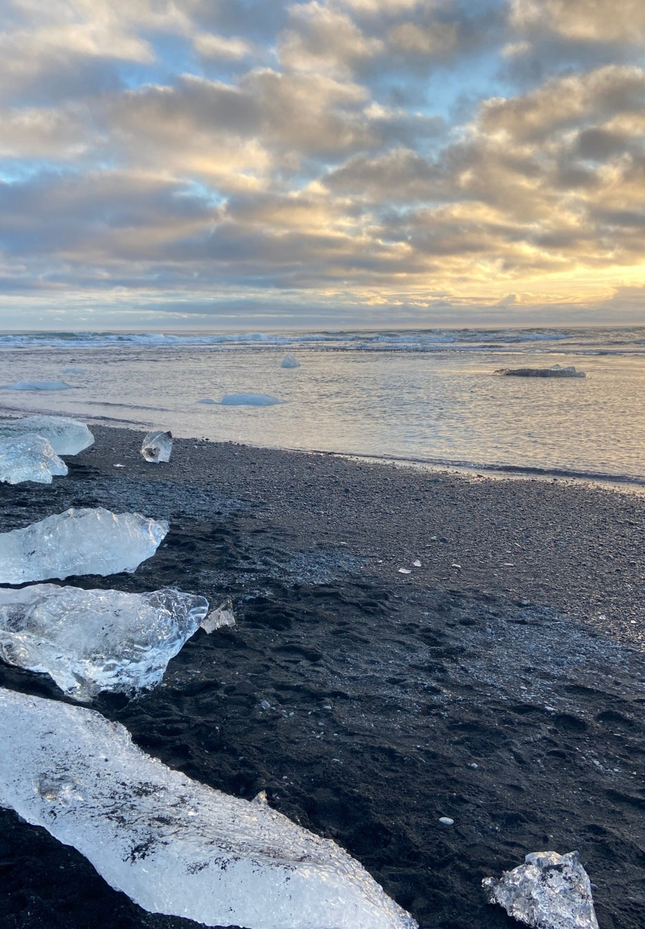 정말로 해변에 얼음 덩어리들이 있었습니다