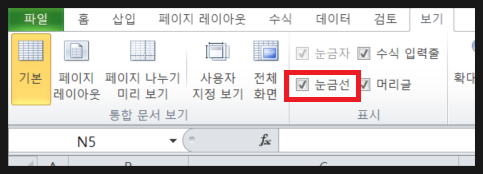 [엑셀] 눈금선 없애는 방법