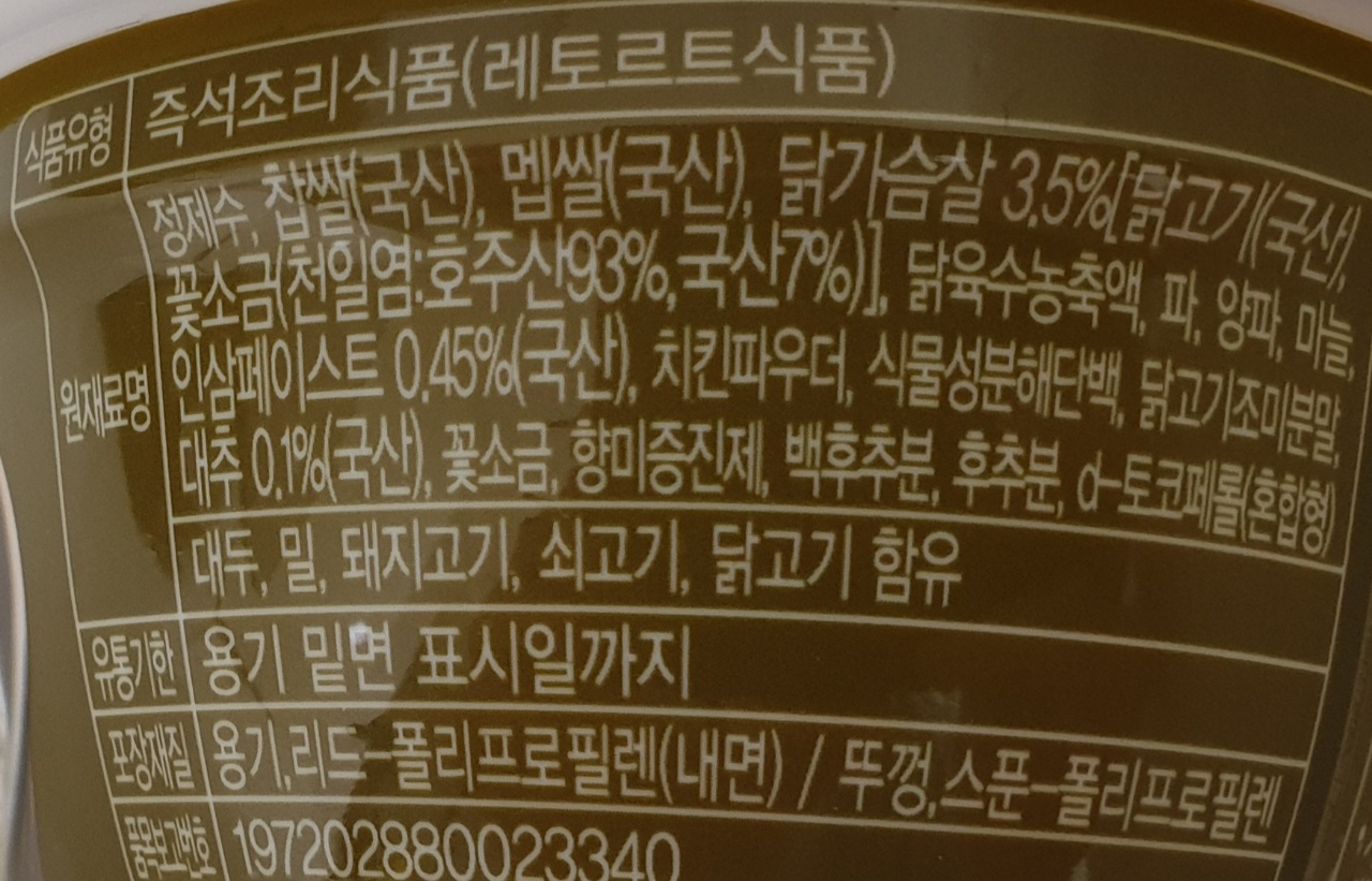 닭가슴살 3.5% / 인삼 페이스트 0.45% / 대추 0.1%