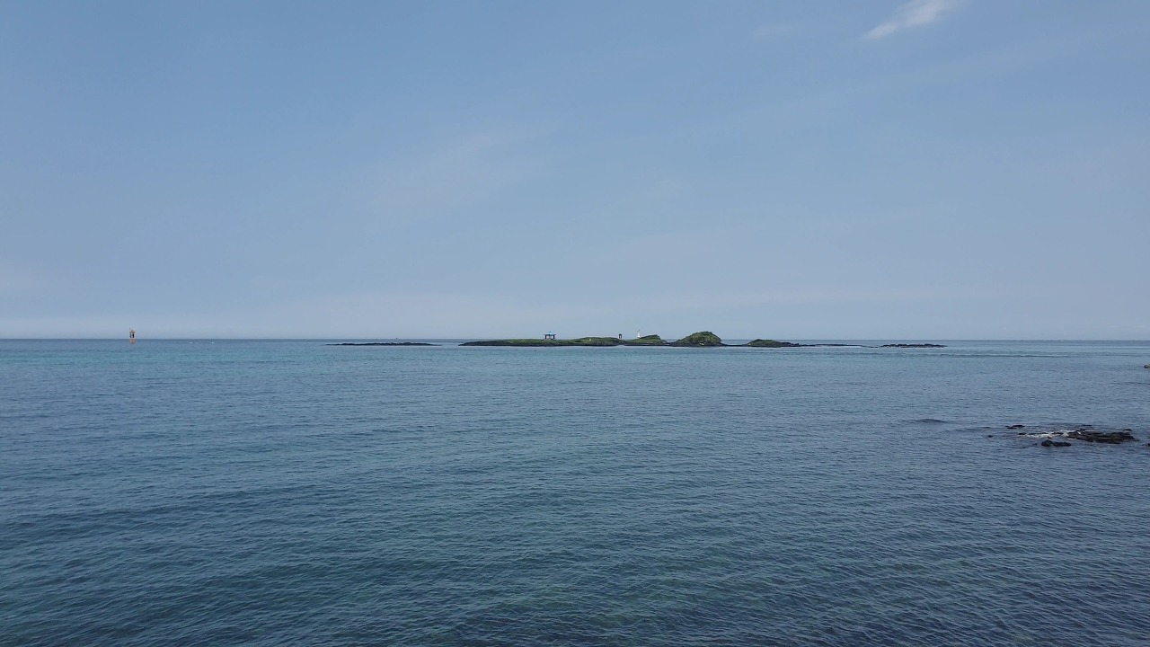 멋진 바다와 함께 앞에 서우봉이 보이네요.