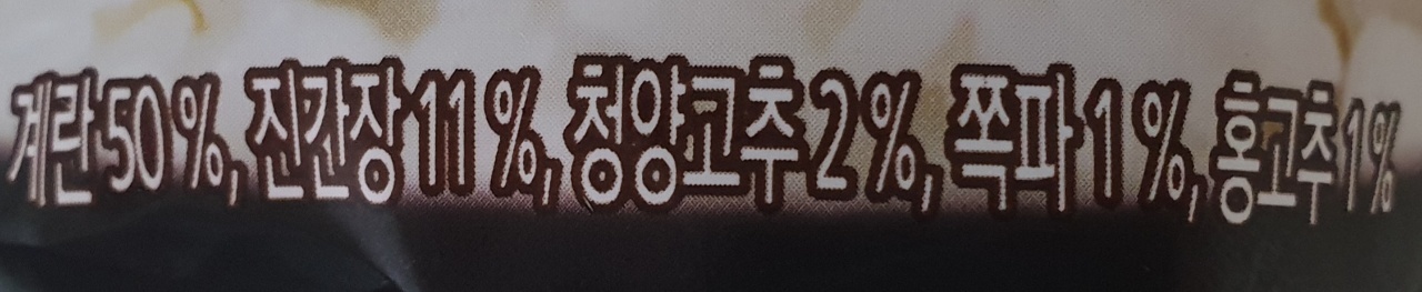 계란 50%, 진간장 11%, 청양고추 2%, 쪽파 1%, 홍고추 1%