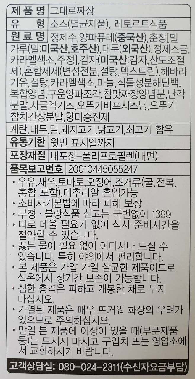 데우지 않고 바로 부어 먹는 그대로 짜장