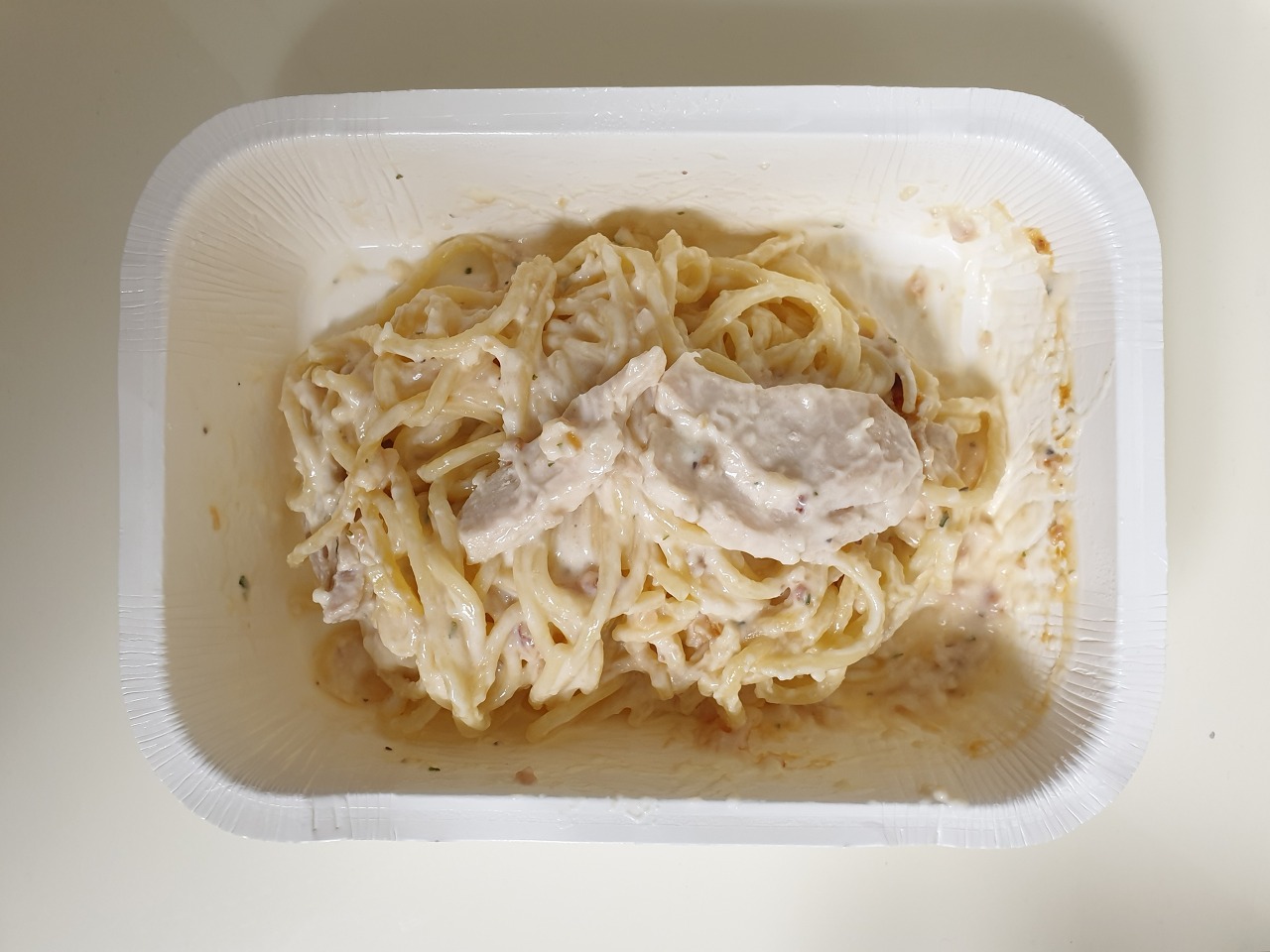 2. 닭고기가 굉장히 담백해서(닭가슴살 함유량이 높아서 더욱 담백하게 느껴짐) 자칫 느끼할 수 있는 까르보나라 파스타의 맛을 잘 잡아주었습니다.