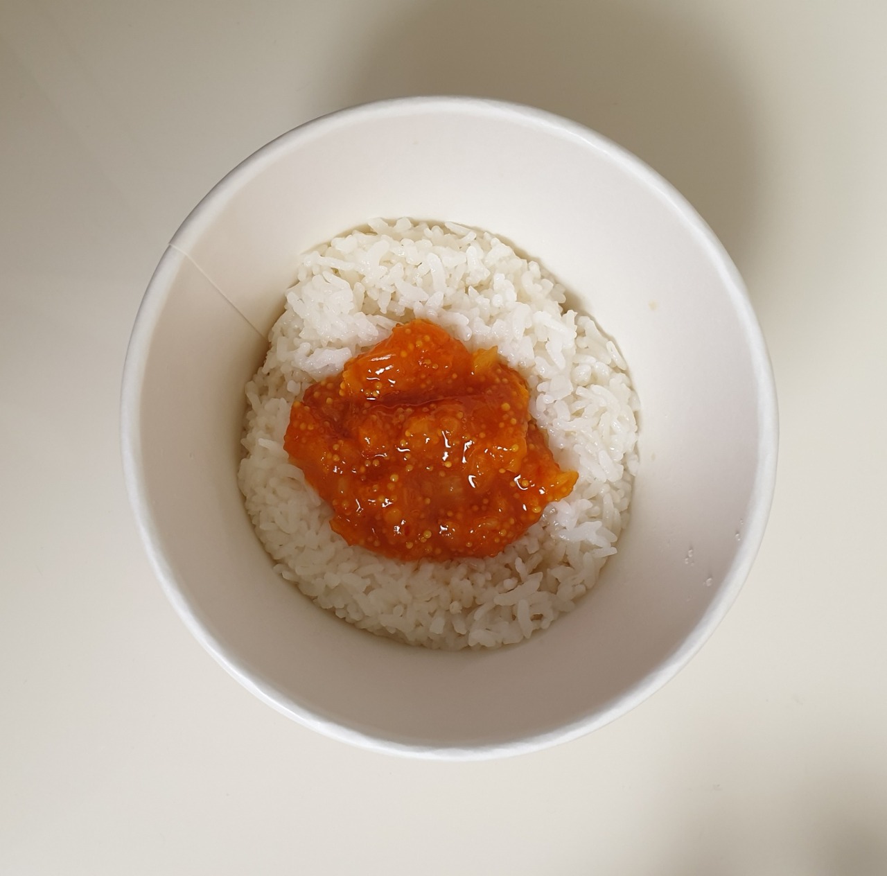 2. 컵용기에 밥과 김치&날치알소스, 고소한김자반, 진한 참기름을 넣고 잘 비벼서 맛있게 드세요.