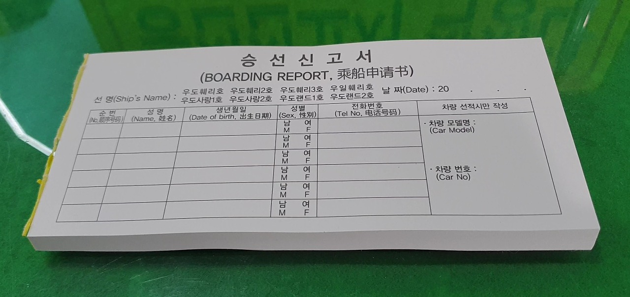 대합실에 들어가면 먼저 승선신고서를 작성한 뒤에,
