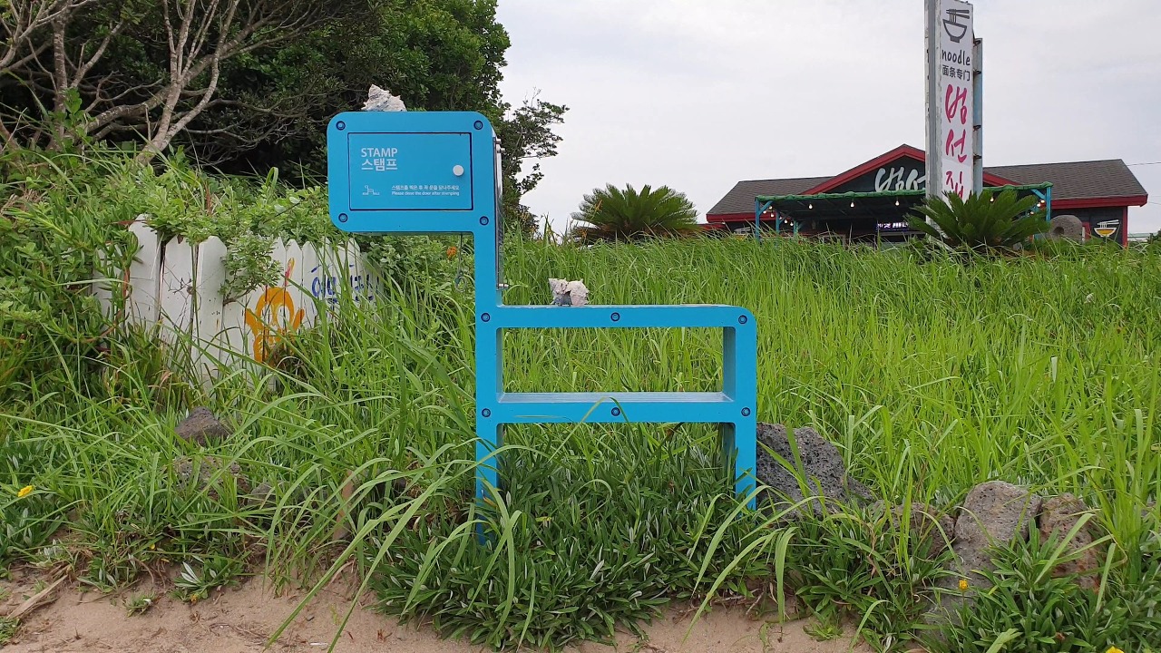 하고수동해변에 중간 스탬프가 있습니다.