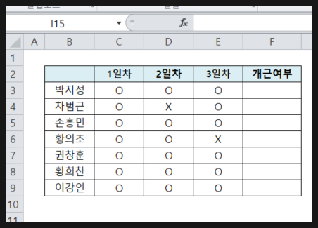 5. 개근일 경우, 개근이 아닐 경우 결과값을 각각 입력해줍니다.