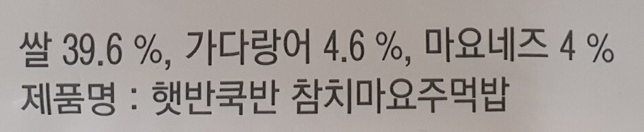 쌀 39.6%, 가다랑어 4.6%, 마요네즈 4%