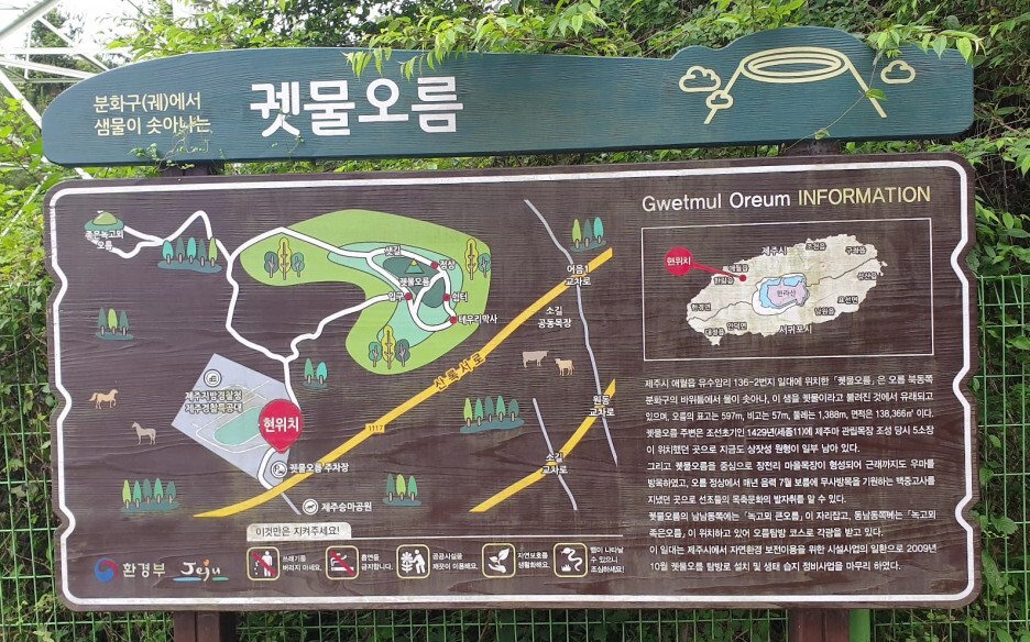 궷물오름은 주차장과 탐방로가 잘 조성되어 있고,