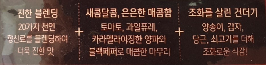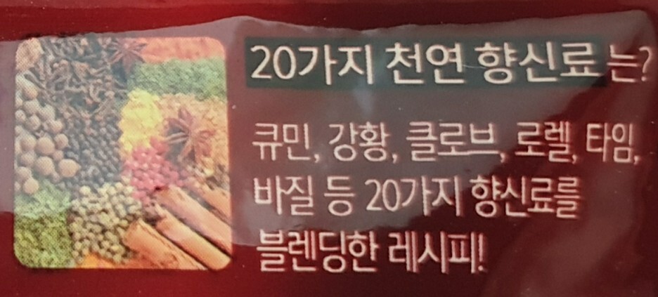 - 진한 블렌딩 : 20가지 천연 향신료를 블렌딩하여 더욱 진한 맛