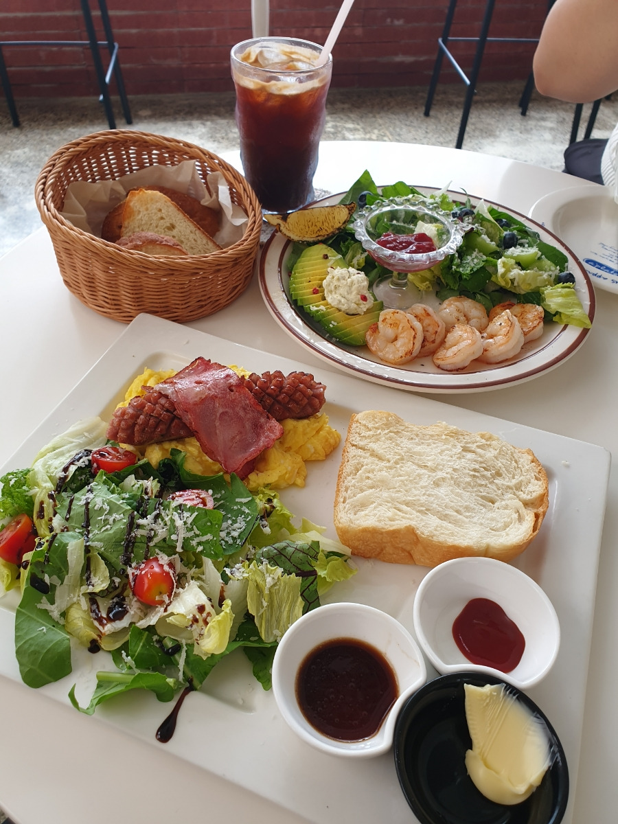 에그스크램블이랑 소세지가 정말 최강의 조합이었습니다